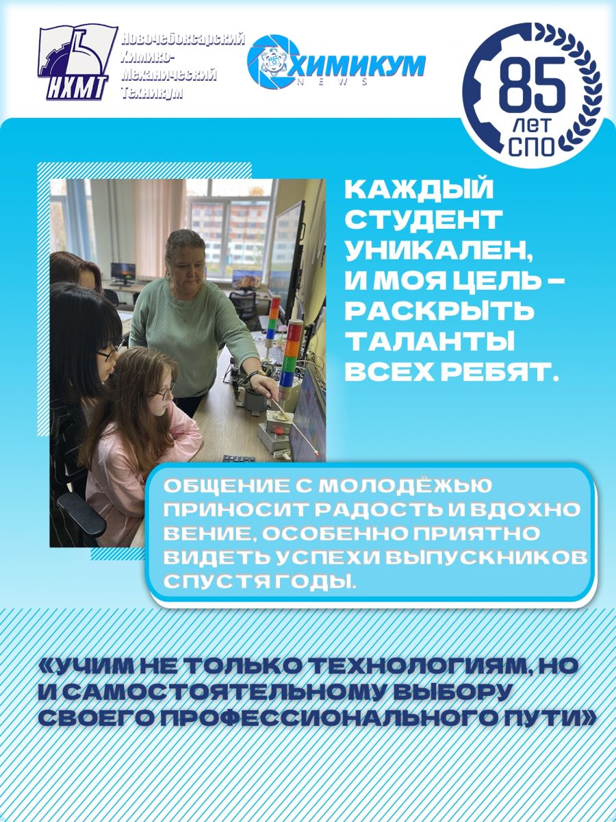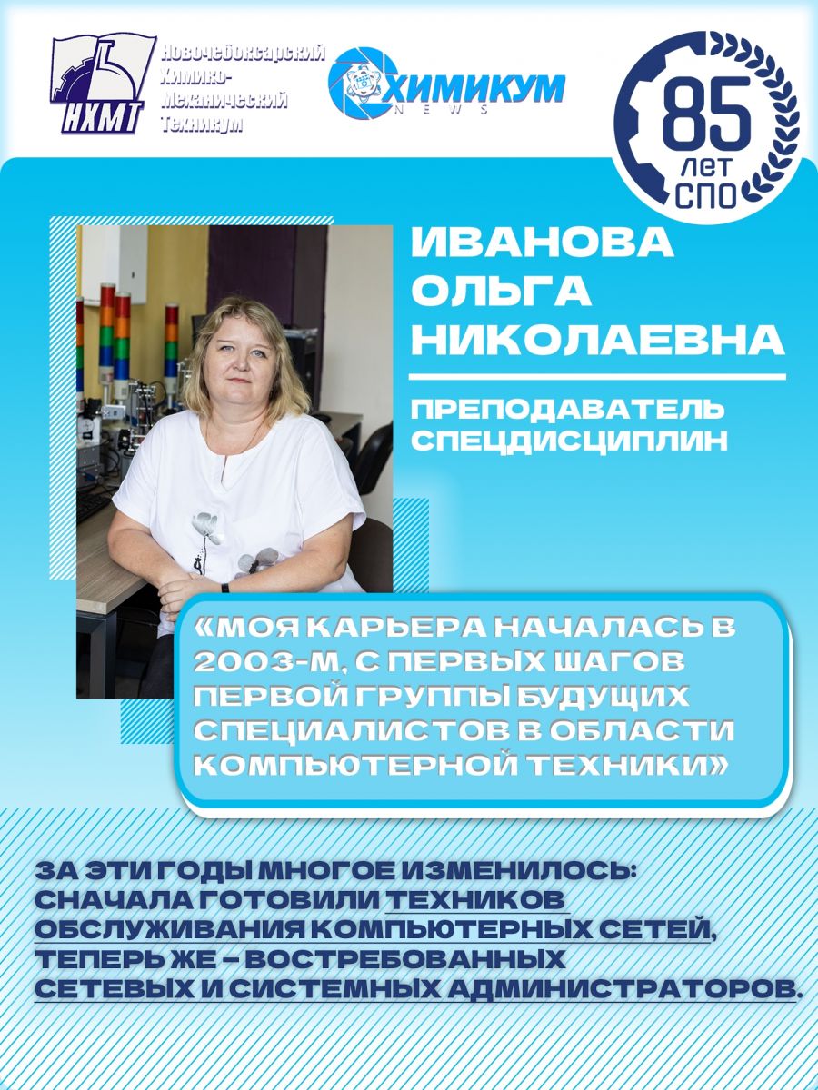 Интервью с преподавателем Ивановой Ольгой Николаевной открывает юбилейную рубрику Новочебоксарского химико-механического техникума
